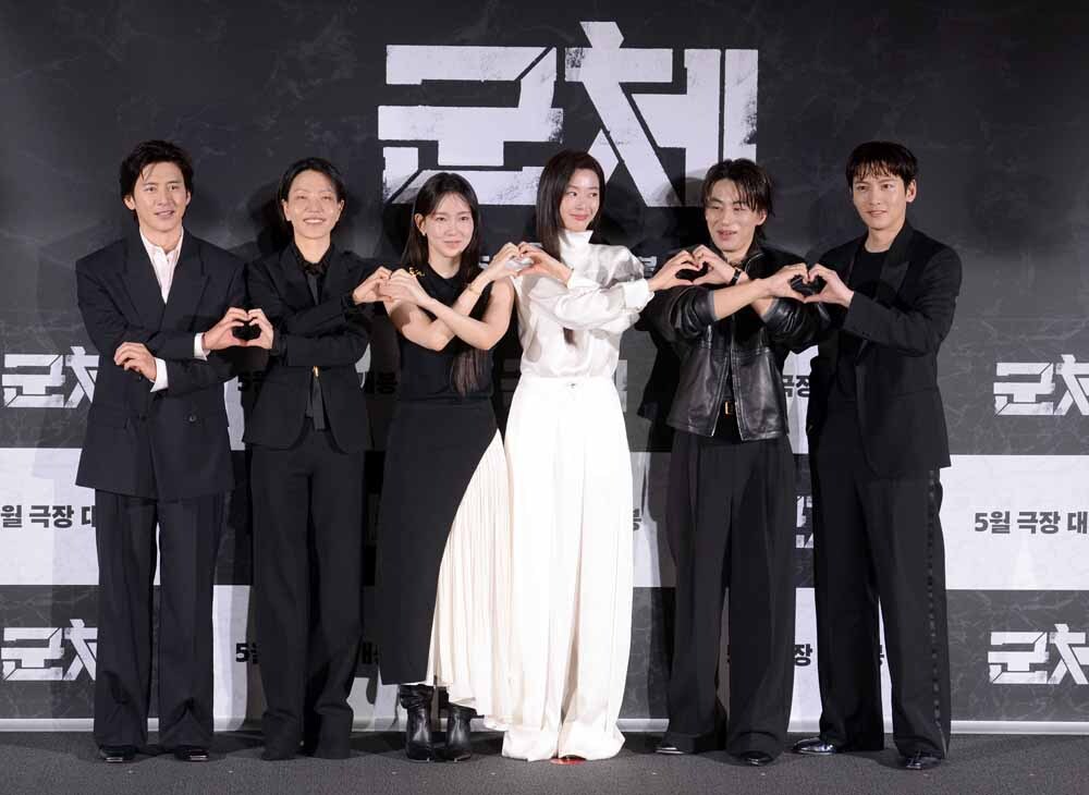 배우 고수, 김신록, 신현빈, 전지현, 구교환, 지창욱(왼쪽부터)이 6일 서울 용산구 CGV용산점에서 열린 영화'군체(감독 연상호)'제작발표회에서 포즈를 취하고 있다. 영화'군체(감독 연상호)'는 정체불명의 감염 사태로 봉쇄된 건물 안, 고립된 생존자들이 예측할 수 없는 형태로 진화하는 감염자들에 맞서 벌이는 사투를 그린 영화로 전지현, 구교환, 지창욱, 신현빈, 김신록 등이 출연한다. 사진=김두홍 기자 kimdh@sportsworldi.com
