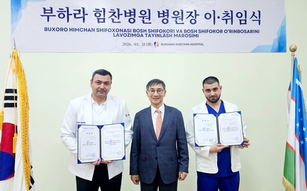 부하라 힘찬병원은 최근 마르다노브 잠시드를 병원장으로, 압둘라예브 이슬롬을 부병원장으로 선임했다. 새로운 병원장의 부임을 축하하기 위해 이수찬 힘찬병원 대표원장과 우즈베키스탄으로 향했다.