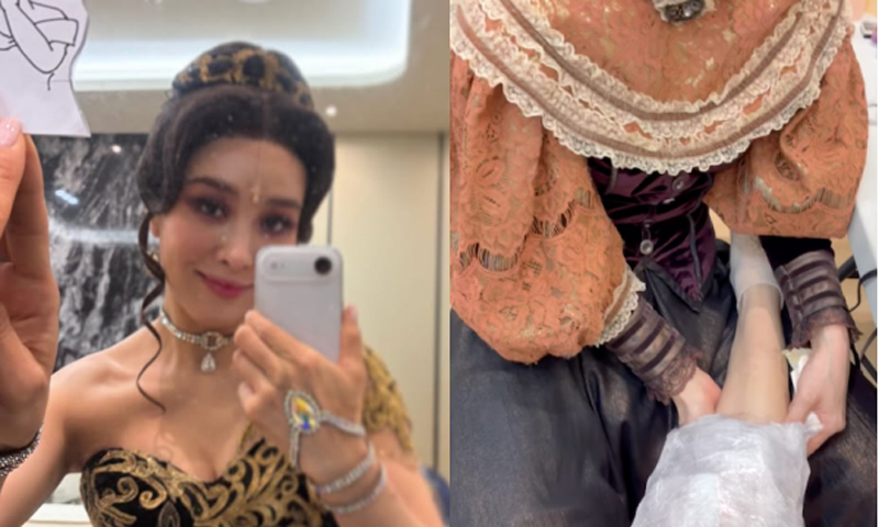 공개된 사진 속 옥주현은 강렬한 드레스를 입고 무대 위 우아한 자태를 드러내는 한편, 부상 부위에 압박 밴드를 착용한 모습으로 당시의 긴박했던 상황을 전했다.