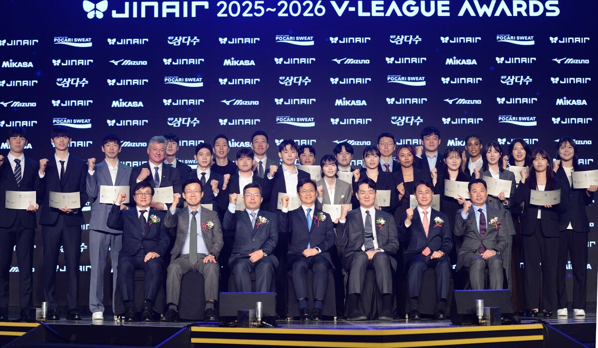 [SW포토] 프로배구 영광의 수상자들 기사입력 2026-04-13 17:51:01 기사수정 2026-04-13 17:51:00 글씨 크기 선택 가장 작은 크기 글자 한 단계 작은 크기 글자 기본 크기 글자 한 단계 큰 크기 글자 가장 큰 크기 글자 13일 광진구 워커힐호텔 비스타홀에서 열린 '진에어 2025~2026 V-리그 시상식'에서 수상자들과 귀빈이 기념사지을 촬영하고 있다. 2026.04.13. 김용학 기자 yhkim@sportsworldi.com 13일 광진구 워커힐호텔 비스타홀에서 열린 '진에어 2025~2026 V-리그 시상식'에서 수상자들과 귀빈이 기념사지을 촬영하고 있다. 2026.04.13. 김용학 기자 yhkim@sportsworldi.com [ⓒ 세계비즈앤스포츠월드 & sportsworldi.com, 무단전재 및 재배포 금지] 메뉴보기 페이스북 공유 트위터 공유 url 공유 더보기