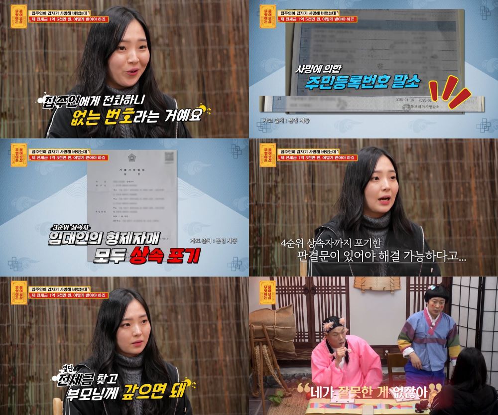 집주인의 갑작스러운 사망으로 전세 보증금을 돌려받지 못할 위기에 처한 임차인의 안타까운 사연이 공개됐다.