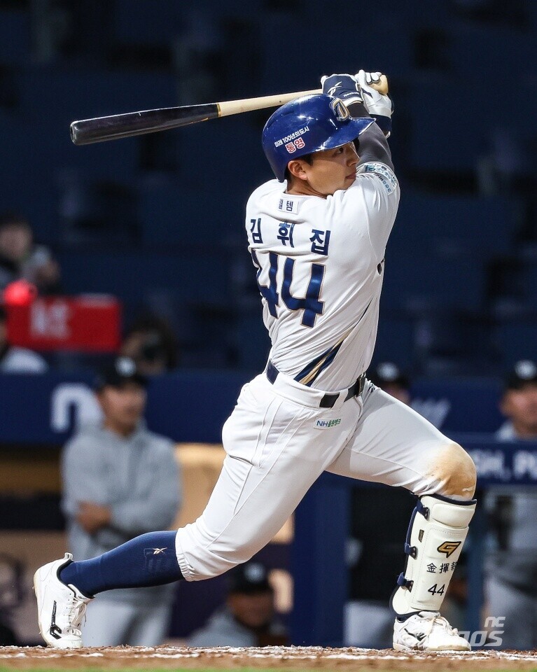 아찔한 장면은 전날 창원 KT전서 발생했다. 2회 말이었다. KT 선발투수 맷 사우어의 2구(147㎞ 직구)가 몸 쪽 높은 코스로 들어왔다. 스윙을 준비하던 김휘집은 급하게 몸을 멈췄지만, 완전히 피할 순 없었다. 몸에 맞는 볼로 출루했다. 3회 초 수비서 교체됐다.