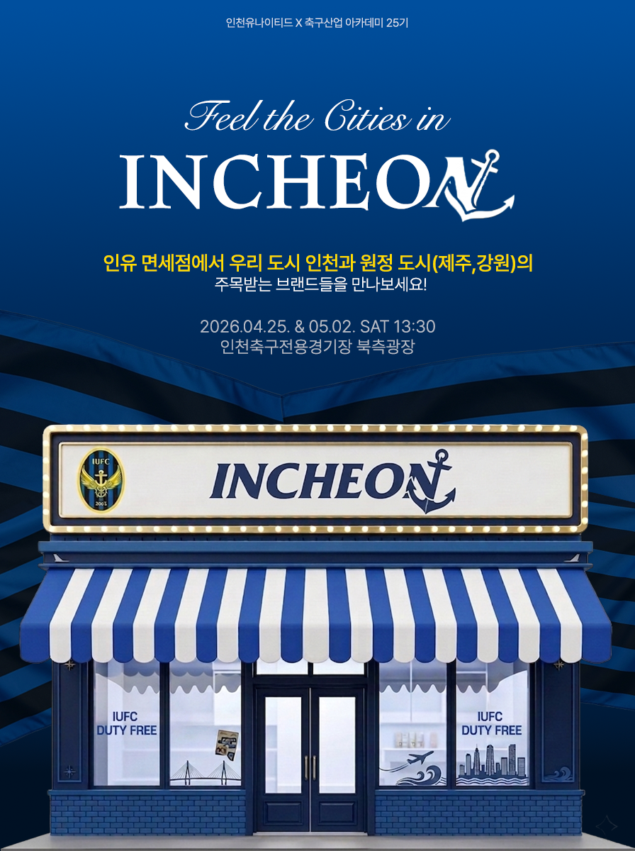 인천 관계자는 “인천유나이티드 면세점은 한국프로축구연맹 ‘축구산업 아카데미’ 25기 수강생과 함께 기획 및 운영하는 프로젝트”라며 “단순한 경기 이벤트를 넘어 K리그 최초의 경기장 광장 플랫폼 수익화 모델이자 팬 경험 혁신 사례가 될 것”이라고 전했다. 그러면서 “향후 더 많은 도시와 브랜드가 참여하는 지속 가능한 플랫폼으로 확대해 나갈 계획”이라고 밝혔다.