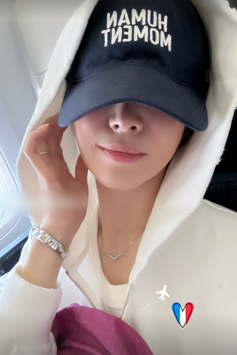 공개된 사진 속 송혜교는 프랑스로 향하는 비행기 안에서 여유로운 시간을 보내고 있는 모습이다. 좌석에 앉아 카메라를 바라보며 밝은 표정을 지은 그는 편안한 분위기 속에서 자연스러운 매력을 드러냈다.
