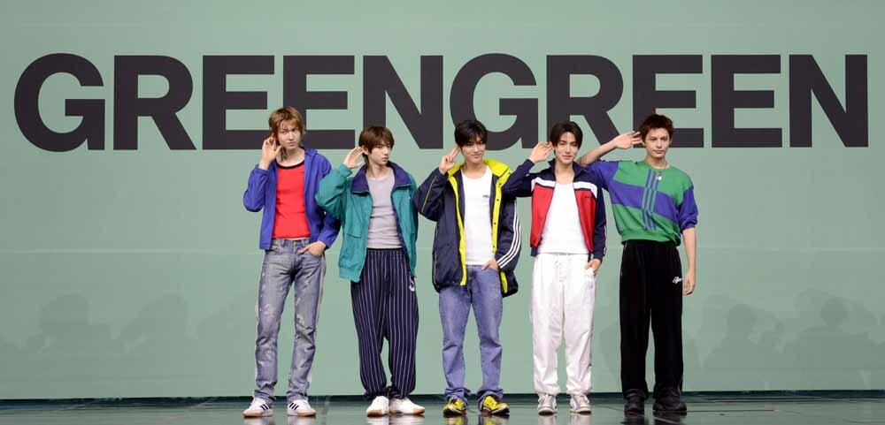 그룹 코르티스(마틴, 주훈, 건호, 성현, 제임스)가 20일 서울 광진구 예스24 라이브홀에서 열린 미니 2집 'GREENGREEN' 발매기념 쇼케이스에서 포즈를 취하고 있다.