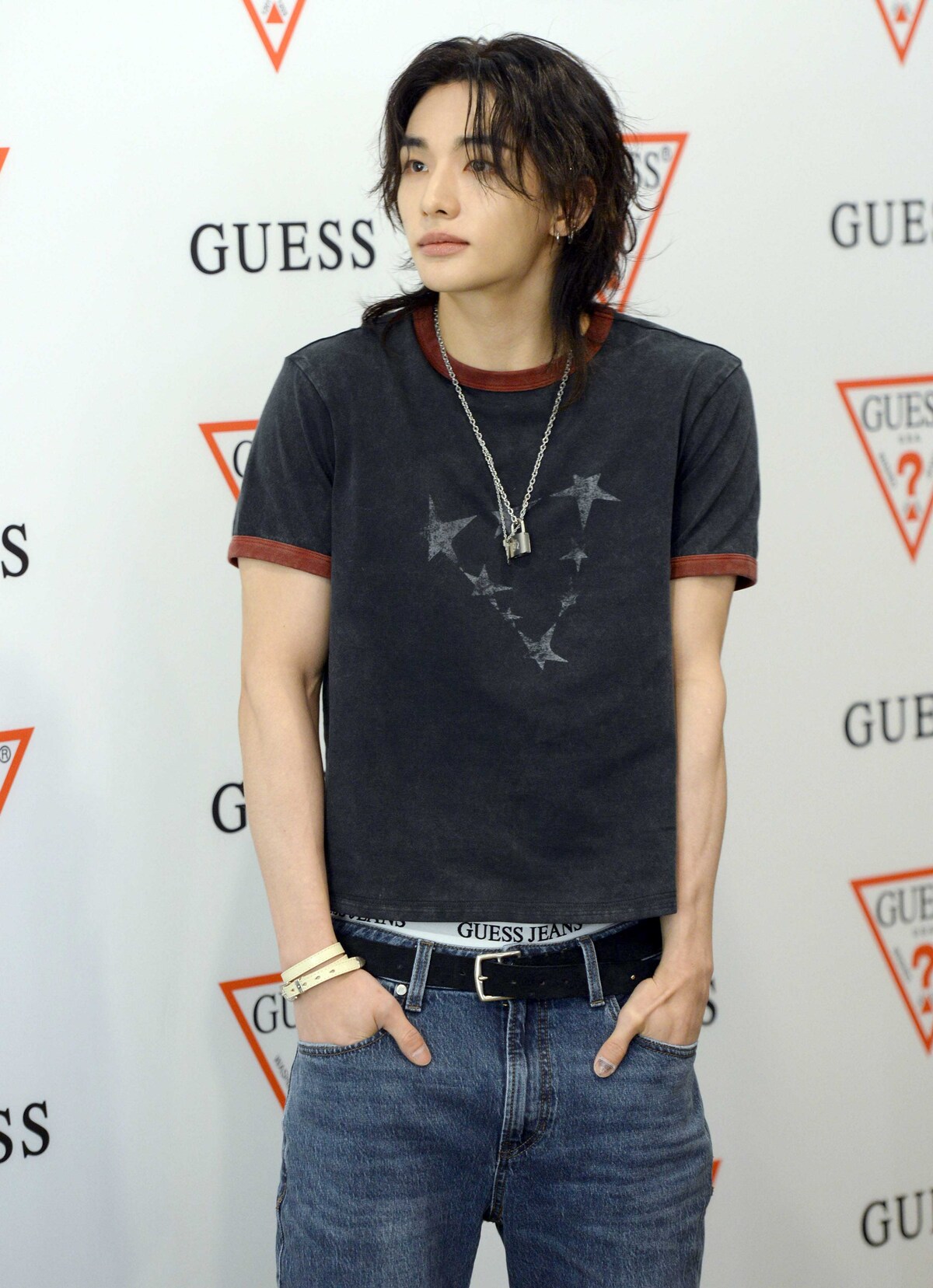 그룹 스트레이 키즈(Stray Kids)의 현진이 GUESS 팝업 스토어 'ROOM 1981' 오픈 기념 행사에 참석 포즈를 취하고 있다. 김용학 기자 2026.04.24.