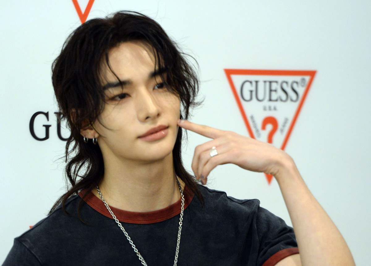그룹 스트레이 키즈(Stray Kids)의 현진이 GUESS 팝업 스토어 'ROOM 1981' 오픈 기념 행사에 참석 포즈를 취하고 있다. 김용학 기자 2026.04.24.