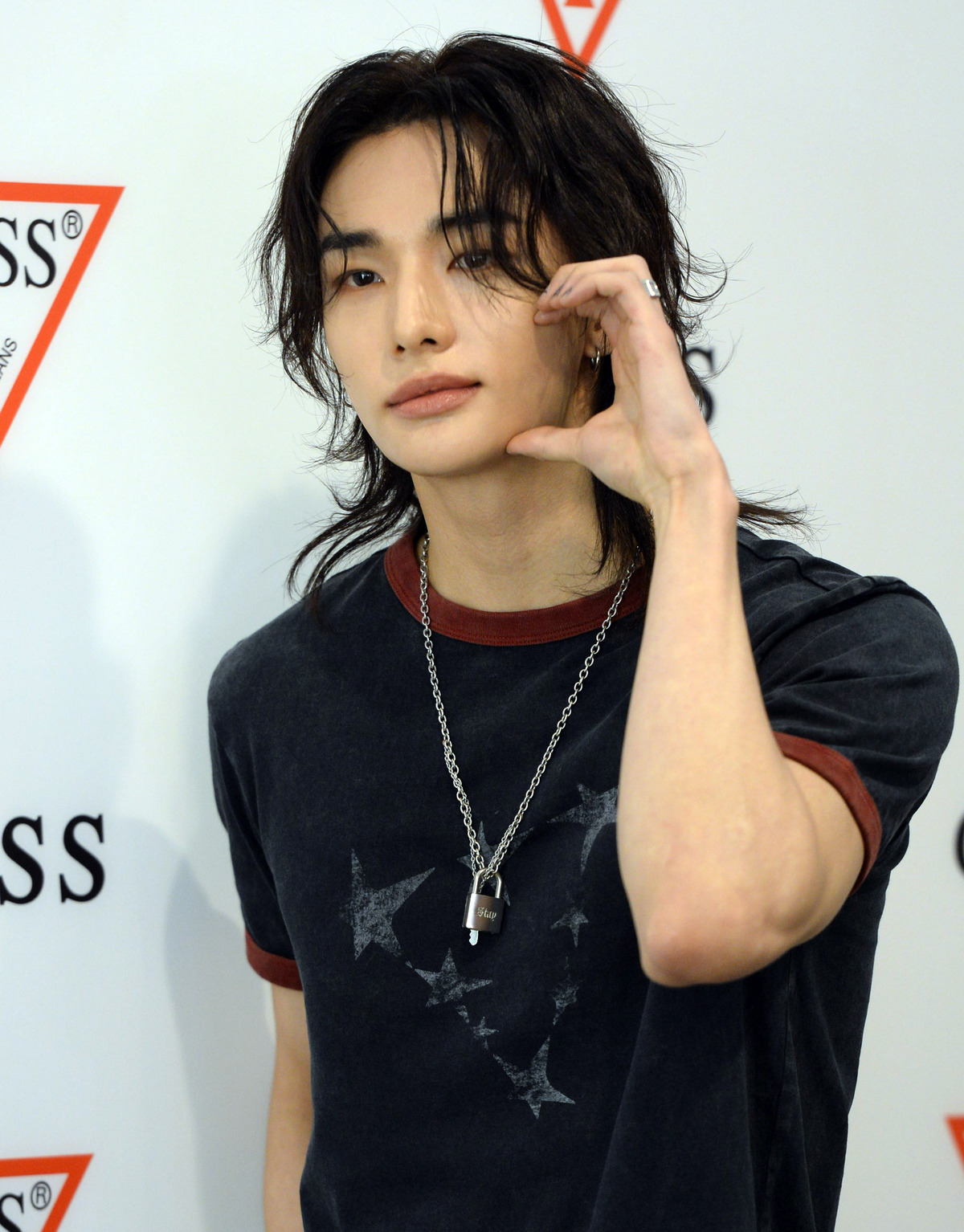 그룹 스트레이 키즈(Stray Kids)의 현진이 GUESS 팝업 스토어 'ROOM 1981' 오픈 기념 행사에 참석 포즈를 취하고 있다. 김용학 기자 2026.04.24.