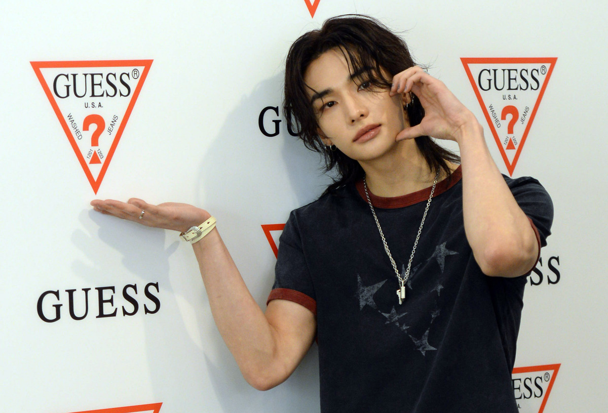 그룹 스트레이 키즈(Stray Kids)의 현진이 GUESS 팝업 스토어 'ROOM 1981' 오픈 기념 행사에 참석 포즈를 취하고 있다. 김용학 기자 2026.04.24.