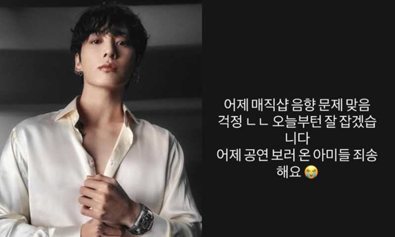 그룹 방탄소년단(BTS) 멤버 정국이 북미 투어 공연 중 발생한 음향 문제에 대해 직접 사과했다.
