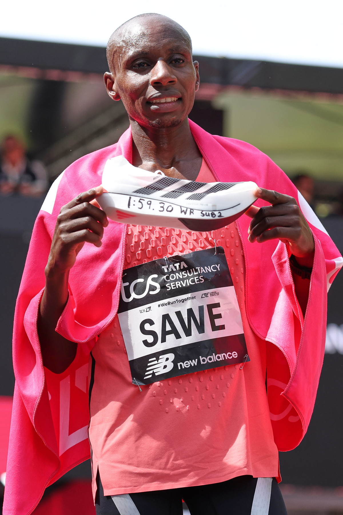 사웨는 지난 26일 영국 런던에서 열린 2026 런던 마라톤 남자부 경기에서 42.195㎞ 풀코스를 1시간59분30초에 완주하며 우승을 차지했다. 이는 켈빈 키프텀(케냐)이 세웠던 종전 세계 기록(2시간00분35초)을 1분5초 앞당긴 기록이다.